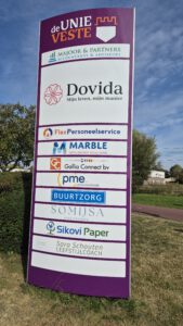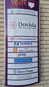 En per gisteren sta ik ook op de zuil die buiten het gebouw staat en die bij de voordeur hangt. Steeds een stukje professioneler. Met dank aan Diane Fase voor mijn mooie logo.